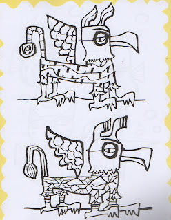 Calef Brown, poet, painter and all around funky creator, is now a doodle book maker! I didn't intend for that sentence to be so rhyme-y, but Brown and his new book, Dragon, Robot, Gatorbunny, just inspire that kind of playfulness. For an overview of Brown's work, click here and for a sampling of his poetry, click on poem titles: Snails and Skeleton Flowers. For details on Dragon, Robot, Gatorbunny, read on!