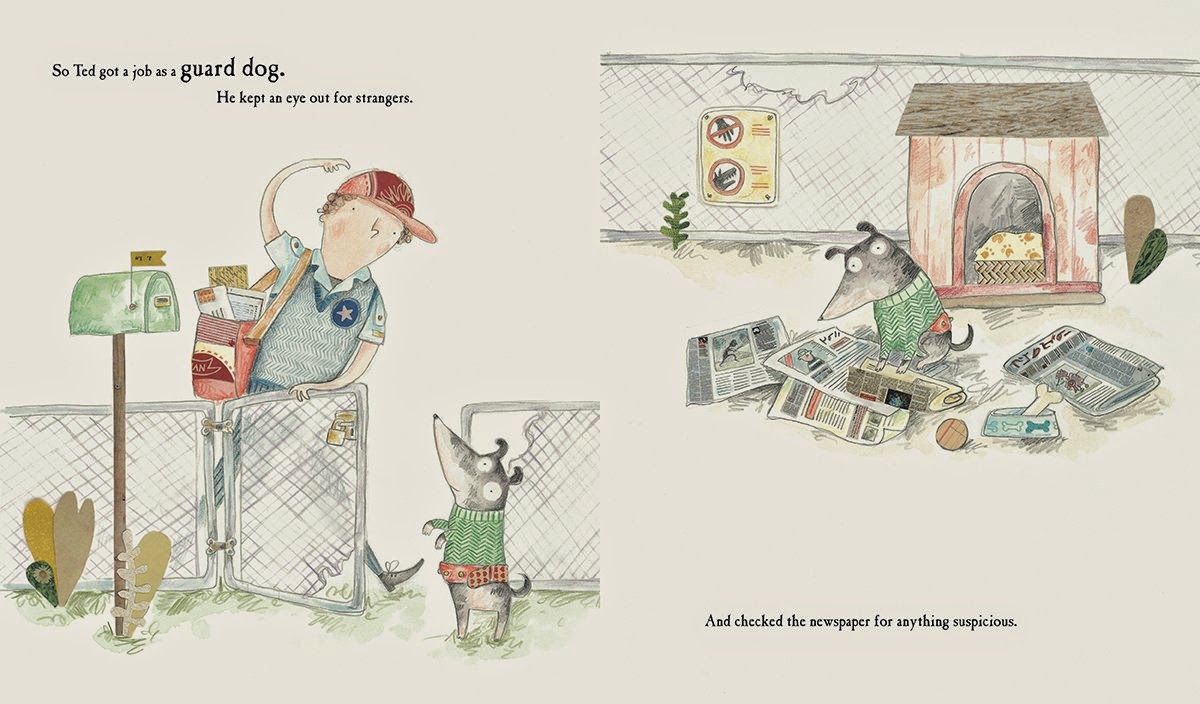 A Perfect Place for Ted is Leila Rudge's delightfuldebut as a picture book author and illustrator. She has worked, wonderfully, with Meg McKinlay on the fantastic No Bears and two illustrated chapter books (see below for links to my reviews.)On her own, Rudge's book exhibits a sense of humor and illustration style that reminds me of a favorite, Emily Gravett.