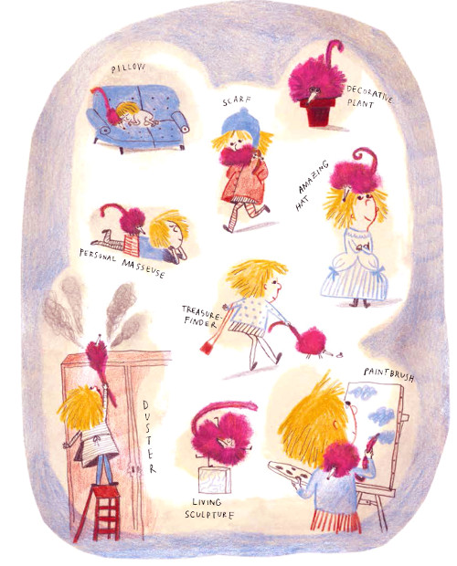 About to give up, Eddie hears these "amazing little giggles" and sees it! Perched on the roof above her is an, "adorable little creature! My present with a thousand uses!" This leads to one of my favorite illustrations in The Wonderful Fluffy Little Squishy, among many, as seen below.