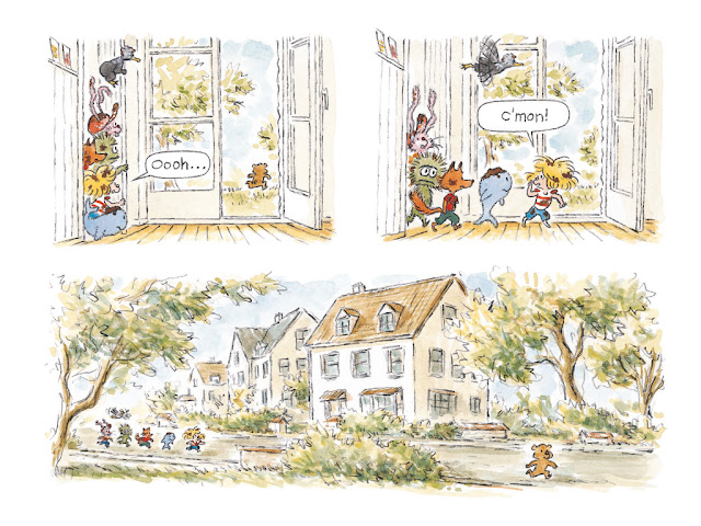 I had never heard of the British author and poet A. F. Harrold before I encountered The Imaginary at a bookstore just before Christmas but I was definitely familiar with illustrator Emily Gravett, a longtime favorite of mine (read my reviews of her picture books here.) Gravett's playful, detailed style is perfectly paired with Harrold's engrossing, creative, slightly creepy story of a girl, her imaginary friend and the fiend who is trying to eat him, making The Imaginary a truly stand out book.