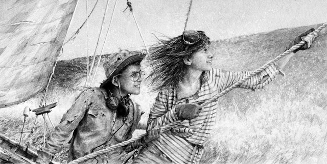 One thing that I noticed with my own children and interacting with babies while working as a bookseller is that babies love to see pictures of babies. And toddlers love to see images of their daily lives. While this can be a little dull to the person reading the book, Meshon finds the perfect way to make these mundane (but, fun) tasks humorously engaging for little and big readers alike. Pup and Sis do everything together. Their day begins, Sis on the right side of the page and Pup, the narrator, on the left, with a stretch. Meshon captures the dog stretch perfectly, and Sis's little puppy-themed pjs are very cute. Breakfast is followed by a trip to the parks, both kid and dog. They make friends, play in the water and, together at the same time, chase a squirrel. A potty break is another moment of subtle humor in this already very funny book. A tandem bike, with a toddler seat and a dog basket, make getting around this very cool city (Seattle? Vancouver? St. Paul?) entertaining. Back home again and exhausted, it's bath time then time to brush the teeth for yet another awesomely hilarious two-page spread.